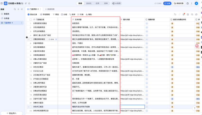 在本地生活服务领域,门店评价管理是运营的 “命脉”——5900 条散落在第三方平台的评价数据、高频且琐碎的差评分类、跨部门协同的信息断层,这些痛点往往需要一支小团队才能勉强应对。但当钉钉 AI 表格的内测消息出现在我的社群时,一个疑问随之产生:能否用一款工具打通 “数据导入 – 智能分析 – 自动协同” 的全流程?