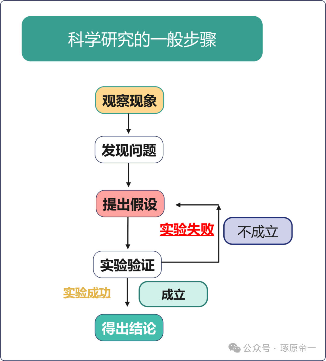 正如我们从小学就开始做的实验课:收集现象、提出问题、做出假设、展开实验(实验1实验2实验3……对照组)、观察实验结果和总结结论,这样一套完整的科学研究方法。