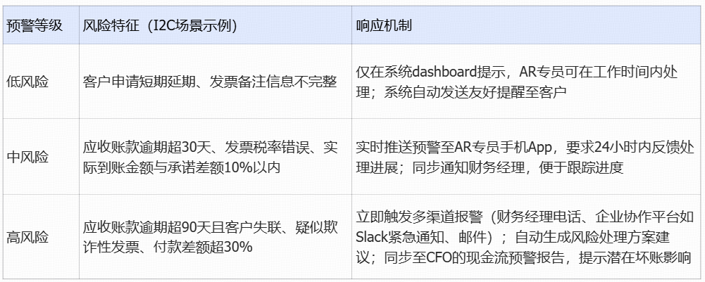 Verity AI根据风险影响范围、损失概率将预警分为3个等级,并匹配不同的响应机制,避免预警泛滥或关键风险遗漏: