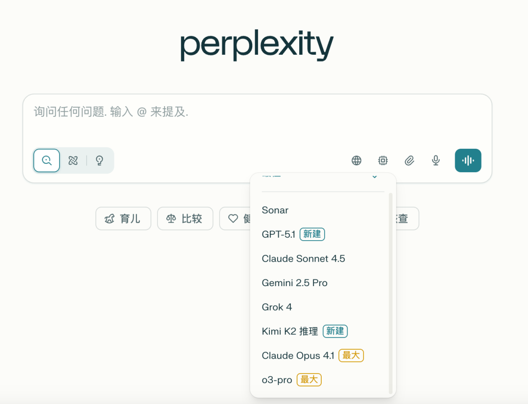 让我先从最近发生的几件事说起。前两天,Perplexity 宣布接入 Kimi K2 Thinking,这是他们目前接入的唯一一个中国模型。和 Kimi 一起被接入的,是 OpenAI 刚刚发布的 GPT-5.1。上一个被 Perplexity 接入的中国模型还是今年 1 月震惊全球的 DeepSeek R1。这个消息的分量远比表面看起来要重。Perplexity 作为全球领先的 AI 搜索引擎,对模型的选择极为严格,他们需要确保接入的模型既有强大的性能,又能稳定可靠地服务用户。能被 Perplexity 选中,本身就是一种全球科技巨头的背书和认证。