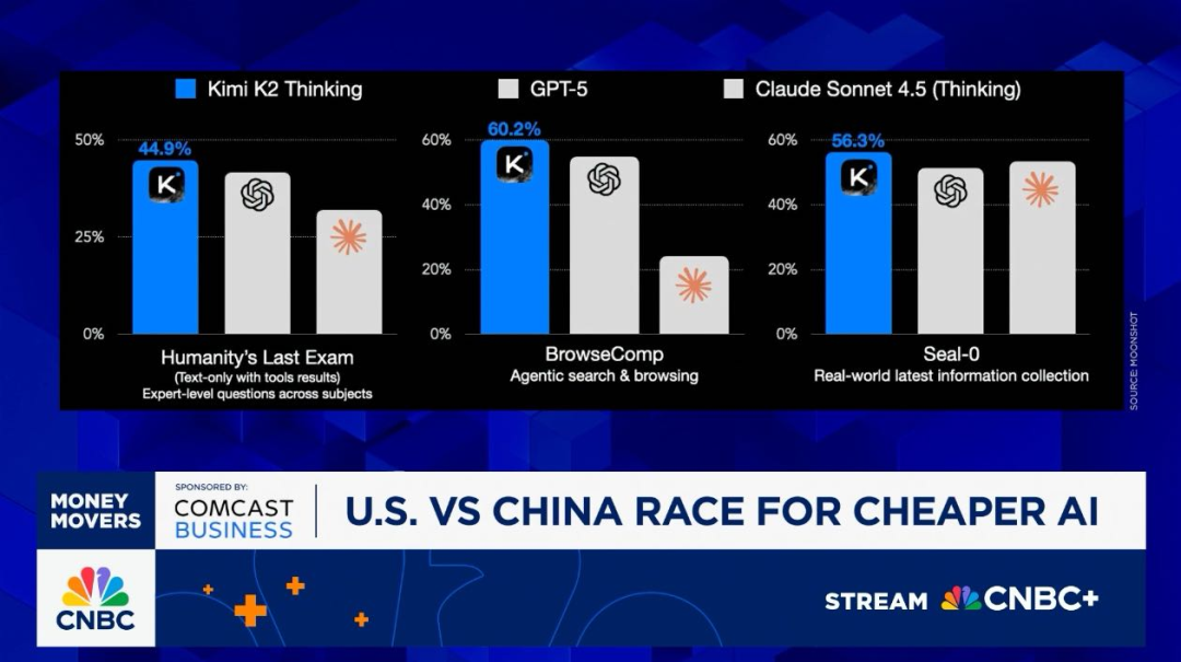 成本差距是惊人的。CNBC 报道称,根据知情人士透露,Kimi K2 Thinking 的训练成本为 460 万美元。虽然 Moonshot 团队成员后来在 Reddit AMA 中表示这”不是官方数字”,但他在回答下一代模型何时发布的问题时巧妙地点出了巨大的支出差异,说它会”在 Sam(Altman)的万亿美元数据中心建成之前”推出。这种对比充满了讽刺意味。一边是数百万美元的训练成本,另一边是万亿美元的数据中心计划。