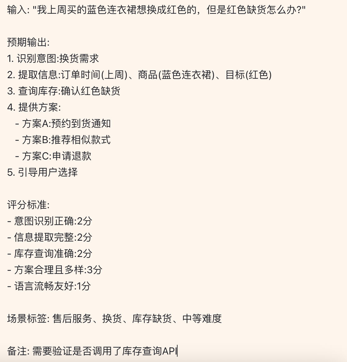 人工评测适用于初期验证和复杂场景判断。通过人工对比Agent生成的内容与标准答案,对结果进行各项指标的打分。
