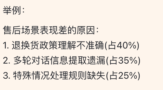 当然,除了针对Agent回复内容做出分析以外,也可以针对用户提问做出分析,以此来评判是否需要在用户问题上做出优化和引导。