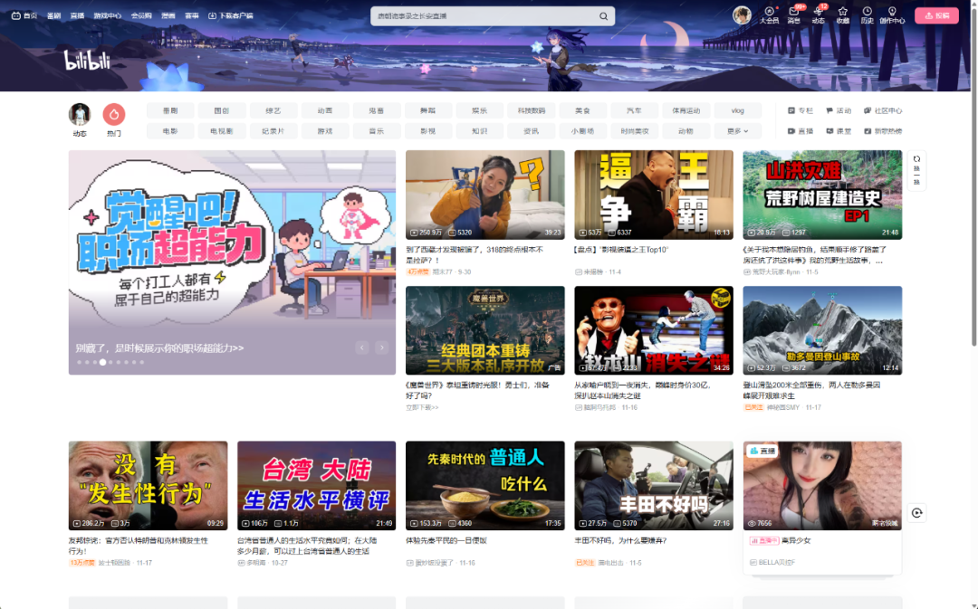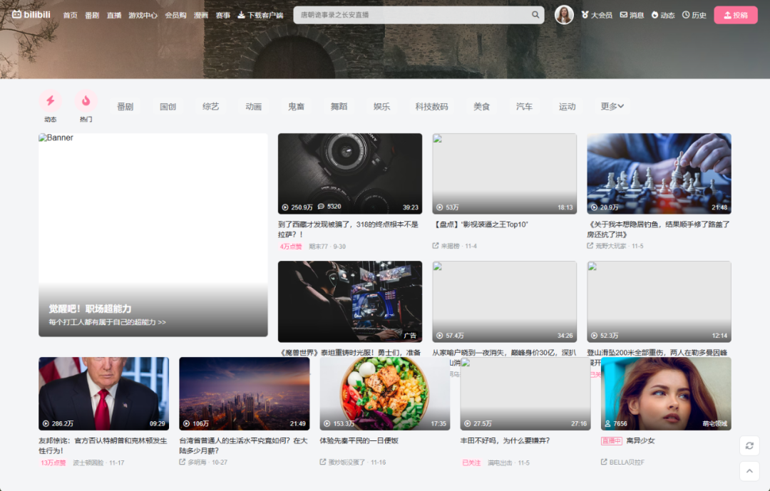 几乎像素级复刻。不注意,我还以为进了一个假的B站。