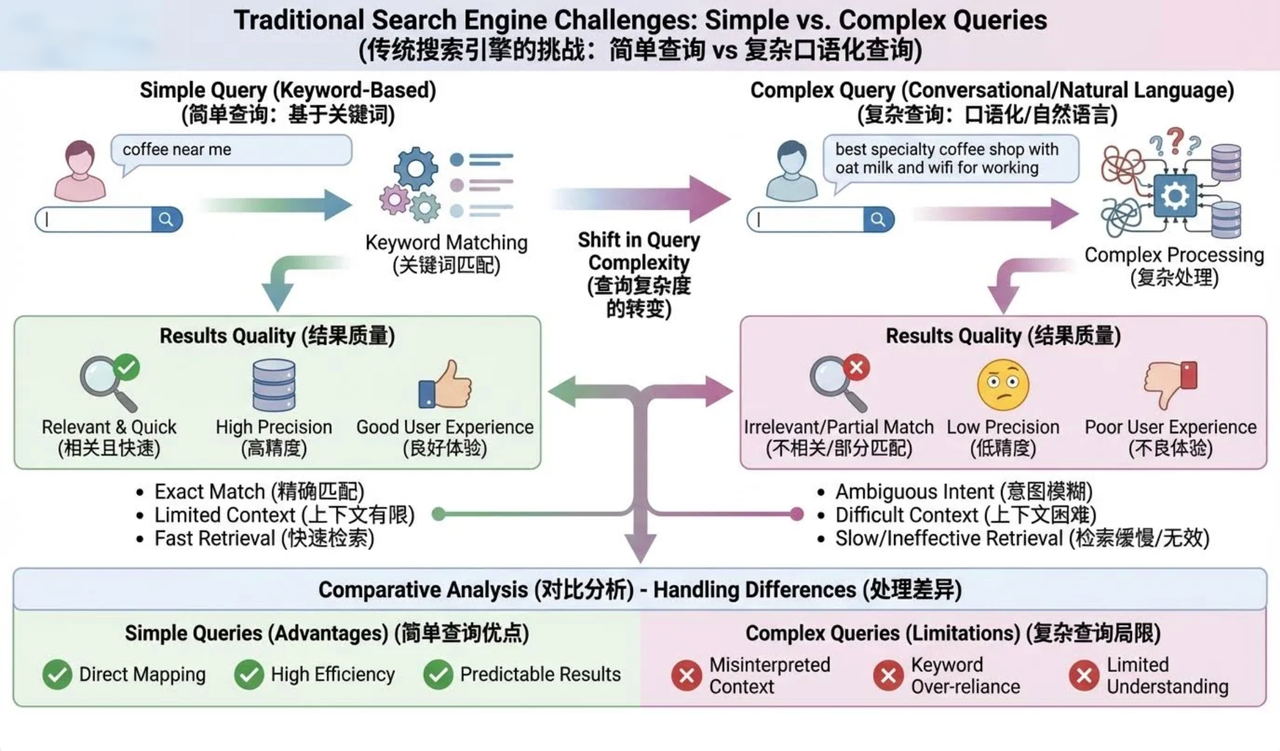 搜索引擎是互联网的“基础设施”,其核心挑战在于精准理解用户的搜索意图。在Transformer出现之前,搜索引擎很大程度上依赖于关键词匹配,辅以RNN或CNN模型进行有限的语义分析。然而,RNN在处理长查询时容易出现“梯度消失”或“梯度爆炸”问题,导致遗忘早期信息;CNN则更擅长捕捉局部特征,难以理解全局的、非连续的词语关联。这导致传统搜索引擎在处理复杂、口语化的长尾查询时常常表现不佳。