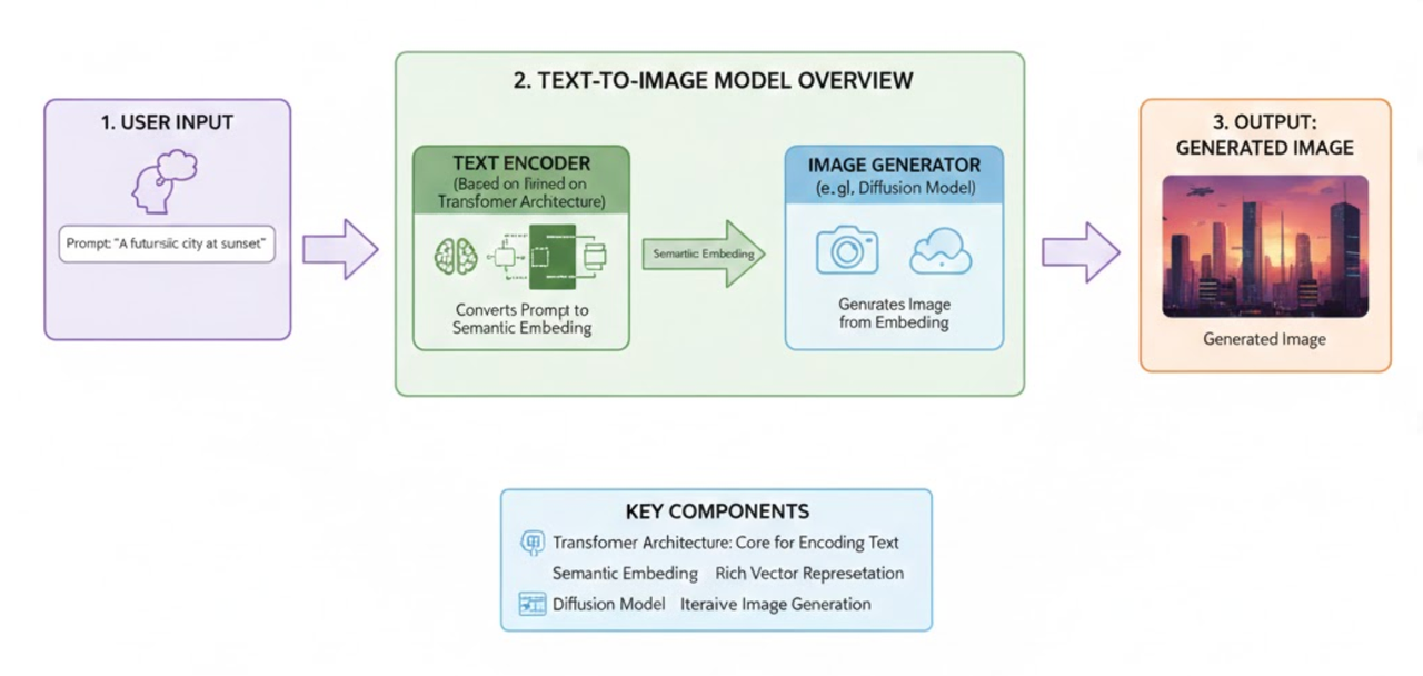 近年来火爆的“文生图”模型,如Stable Diffusion、Midjourney等,其背后同样离不开Transformer架构。这类模型通常包含一个文本编码器和一个图像生成器(如扩散模型)。其中,文本编码器的作用就是将用户的输入提示(Prompt)转换成一个包含丰富语义信息的向量表示(Embedding)。 这个文本编码器往往采用基于Transformer的架构(如CLIP的文本编码器)。
