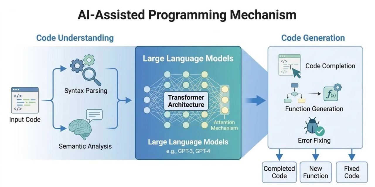 软件开发是所有互联网公司的基石,其效率直接决定了产品的迭代速度和市场竞争力。大模型在代码理解和生成方面的卓越能力,使其成为开发者的强大“编程伙伴”。以基于GPT-3/GPT-4的GitHub Copilot为例,它已经深度集成到主流的集成开发环境(IDE)中,为开发者提供实时的智能辅助: