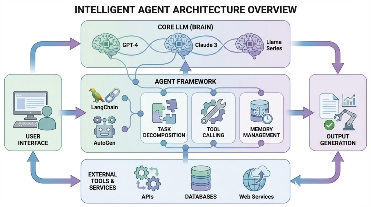 - 智能体框架: 利用LangChain、AutoGen等开源框架,可以大大简化智能体的开发。这些框架提供了任务分解、工具调用、记忆管理等标准模块。