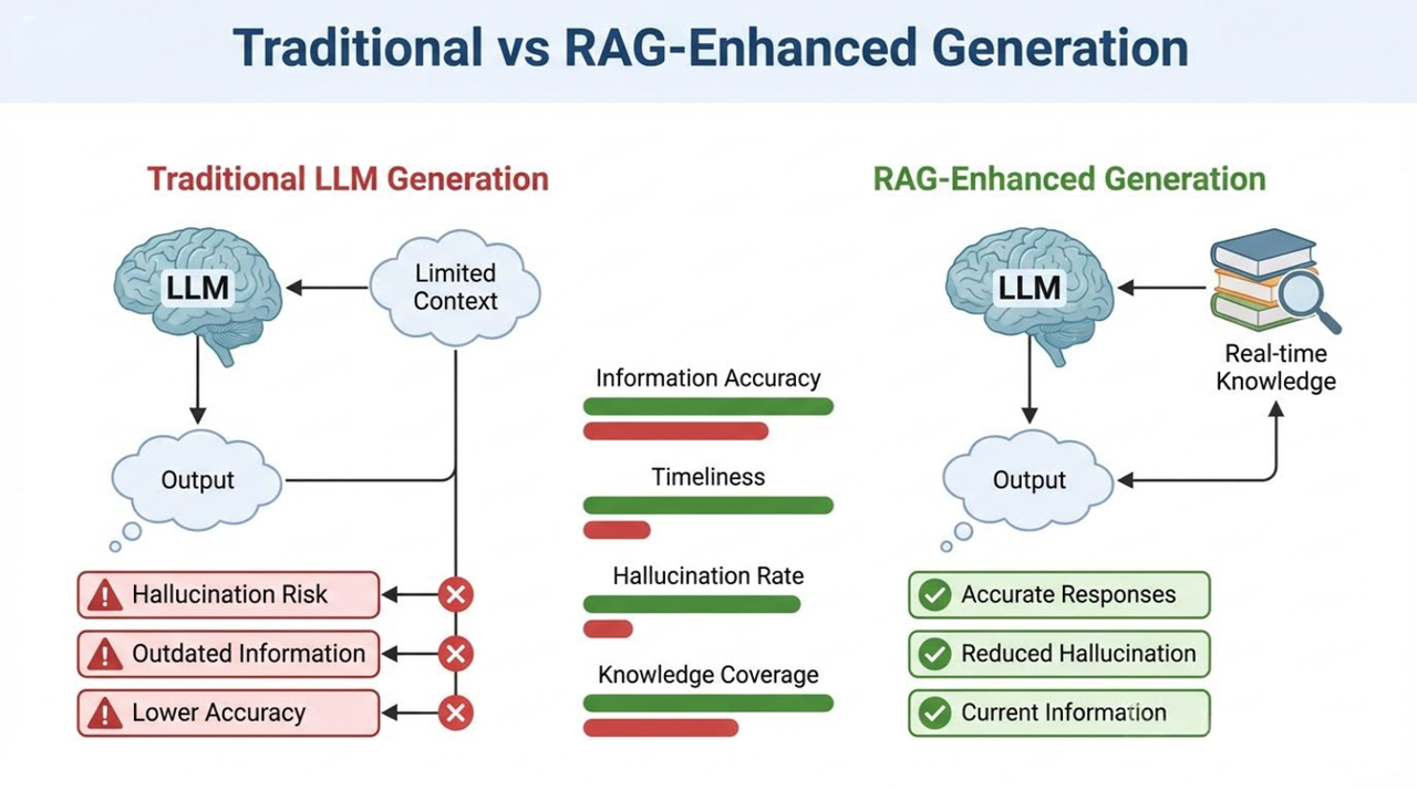 应对策略: 互联网公司在应用中普遍采用检索增强生成(RAG)。通过将模型的回答“锚定”在可信的、实时的外部知识库上,可以极大地约束其自由发挥的空间。此外,在输出端增加事实核查层,或在界面上明确标注内容由AI生成并可能存在错误,也是负责任的做法。