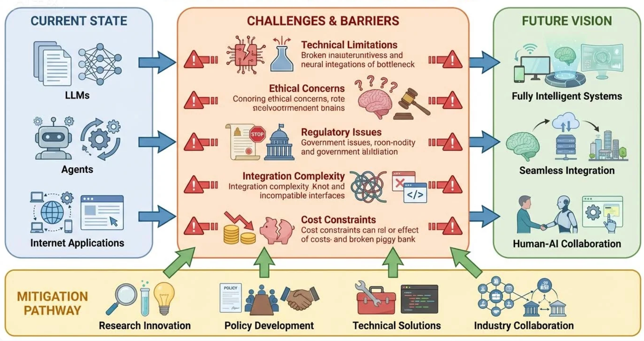 尽管AI技术,特别是大模型和智能体,为互联网行业描绘了一幅激动人心的蓝图,但在通往全面智能化的道路上,依然布满了挑战。清醒地认识这些局限性,并积极探索应对策略,是每一个互联网从业者在当前AI浪潮下的必修课。