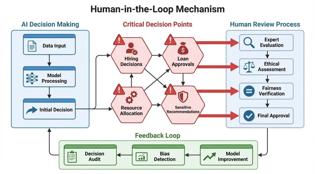 应对策略: 互联网公司需要建立严格的AI伦理审查流程。在数据层面,通过精细化的数据清洗和标注,尽可能消除偏见。在模型层面,采用对抗性训练等技术来提升模型的公平性。在应用层面,设计“人在回路”(Human-in-the-loop)机制,在关键决策点引入人工审核,确保最终结果的公正。