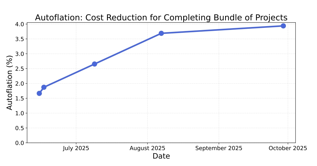 自动化通胀:可以把他理解成,作为一个大老板,把这 240 个 RLI 项目全部外包出去,用AI能比纯雇佣人类省下多少百分比的钱。