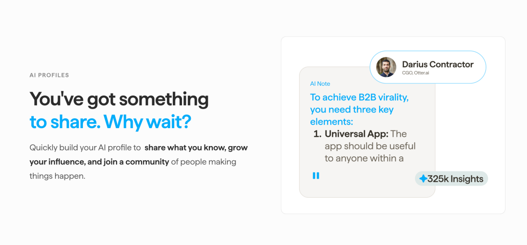 SuperMe 的核心创新在于,他们用 AI 创建了一种全新的”专业身份”形式。不是传统的简历或社交媒体资料,而是一个可以对话的 AI 档案。这个档案基于你真实说过的话、写过的文章、做过的演讲、记录的笔记等等内容训练而成。任何人都可以通过语音或文字与你的 AI 档案对话,学习你的思考方式,获取你的专业建议。