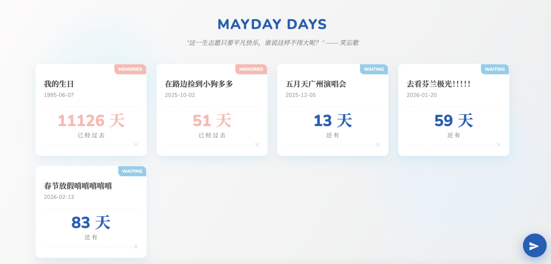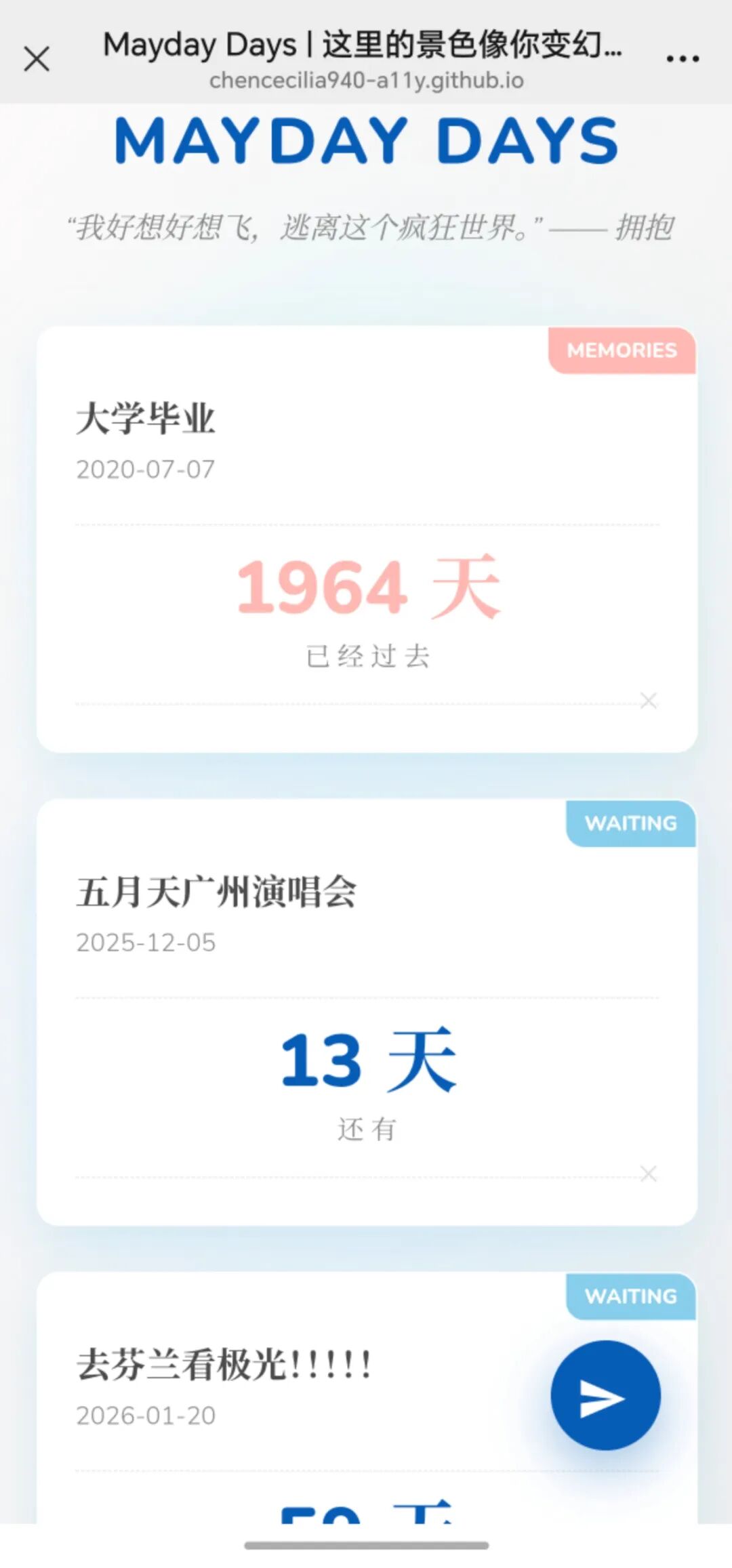 依此类推,像Day Master这类倒计时类产品,普通人已经完全可以给自己和朋友定制。比如,如果你的朋友喜欢五月天,完全可以给他定制一个五月天风格的倒计时工具。