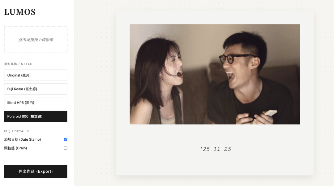 我还加了颗粒感的功能,导出后的照片是这样的: