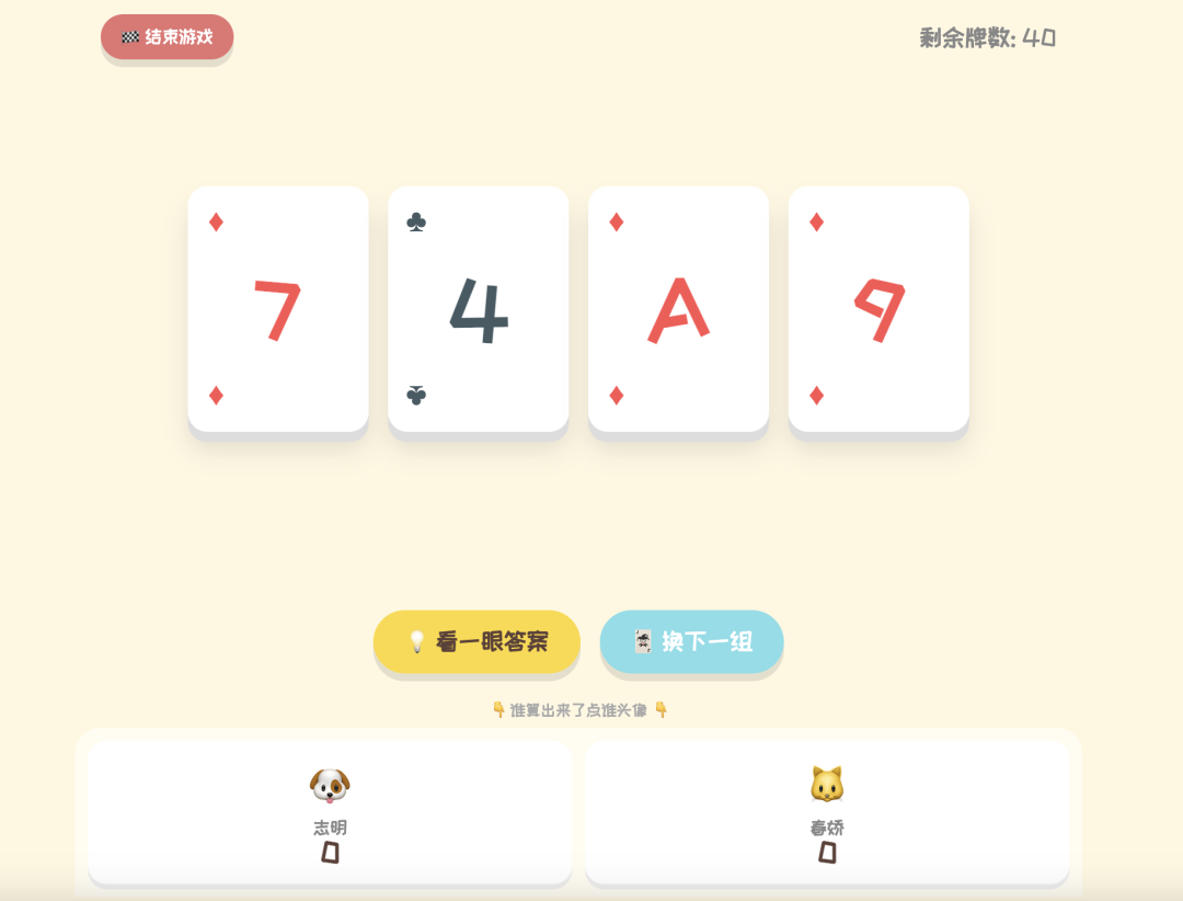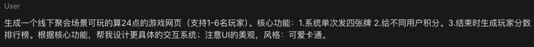 在工具和教学场景外,Gemini 3 Pro已经可以生成实用的游戏工具,例如,为线下聚会定制一款算24点发牌和计分器。提示词共计102个字,从思考到完成代码耗时共计124秒。
