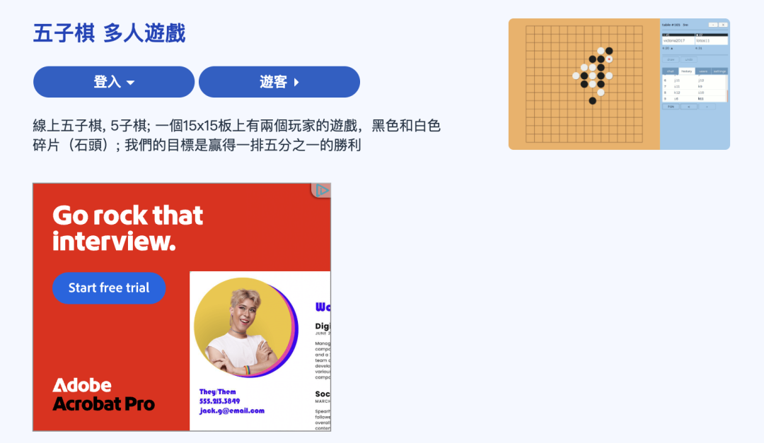相对应的,一些受众少、体量小的需求,往往很难被百分百满足,或者一边满足,一边要看狗皮膏药一样的广告。例如此刻在浏览器搜索在线五子棋,点进第一个链接,广告页面比棋盘还大。