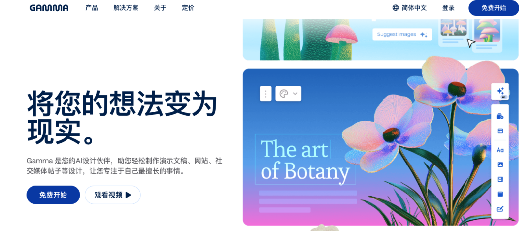Gamma 把自己定义为 “AI-powered platform for visual storytelling”,不是单纯的PPT工具,而是视觉叙事平台。