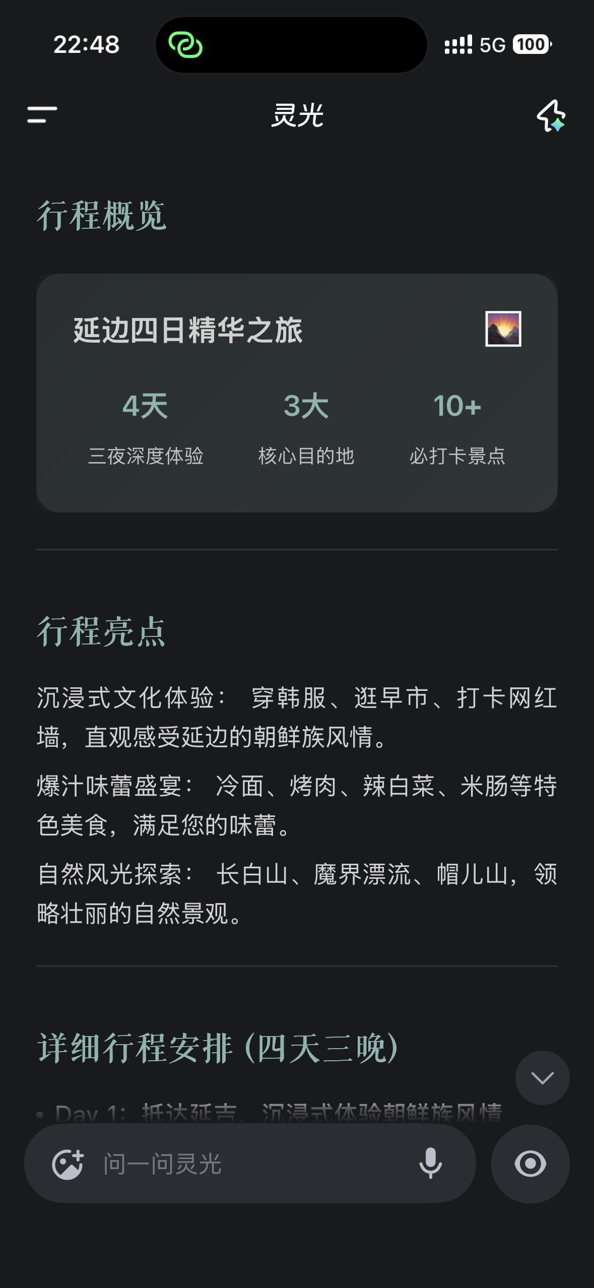 灵光对话彻底告别了以往那种密密麻麻的文字答案,而是图文并茂,在回答里,除了非常精致好看的排版,可能还会给你塞入可交互的地图,各种数据图表、精美的图片,甚至能直接给你生成可旋转的3D模型图。