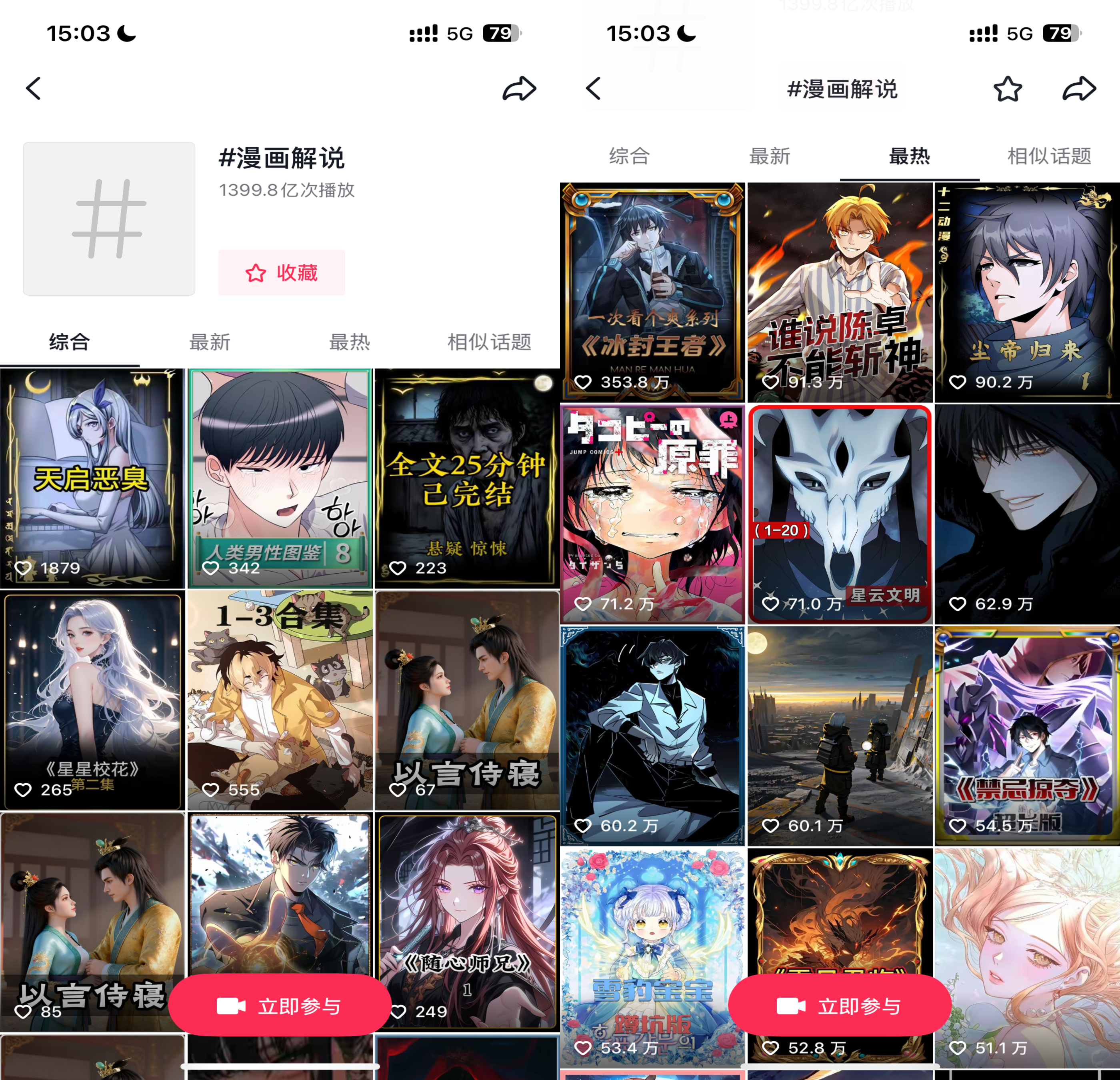 相比更讲究画面动态效果的2D/3D漫剧,解说漫最早起源于网文小说和漫画的广告投流,由于制作门槛低,往往以“漫剪”“漫画解说”等形式存在。目前,仅抖音平台相关话题#漫画解说 累计播放量就高达1399亿次,可以一窥这类内容的受欢迎程度。