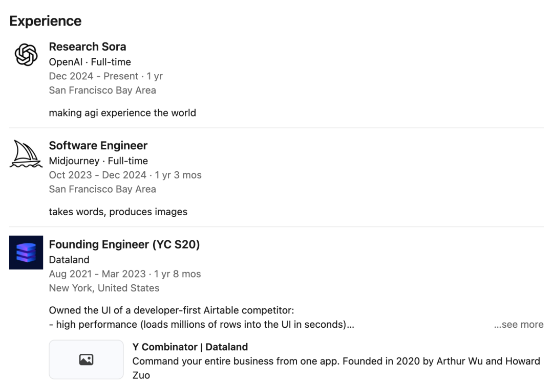 现在的他是OpenAI的研究科学家,Sora的核心技术贡献者,年仅23岁,竟然是个高中辍学生!