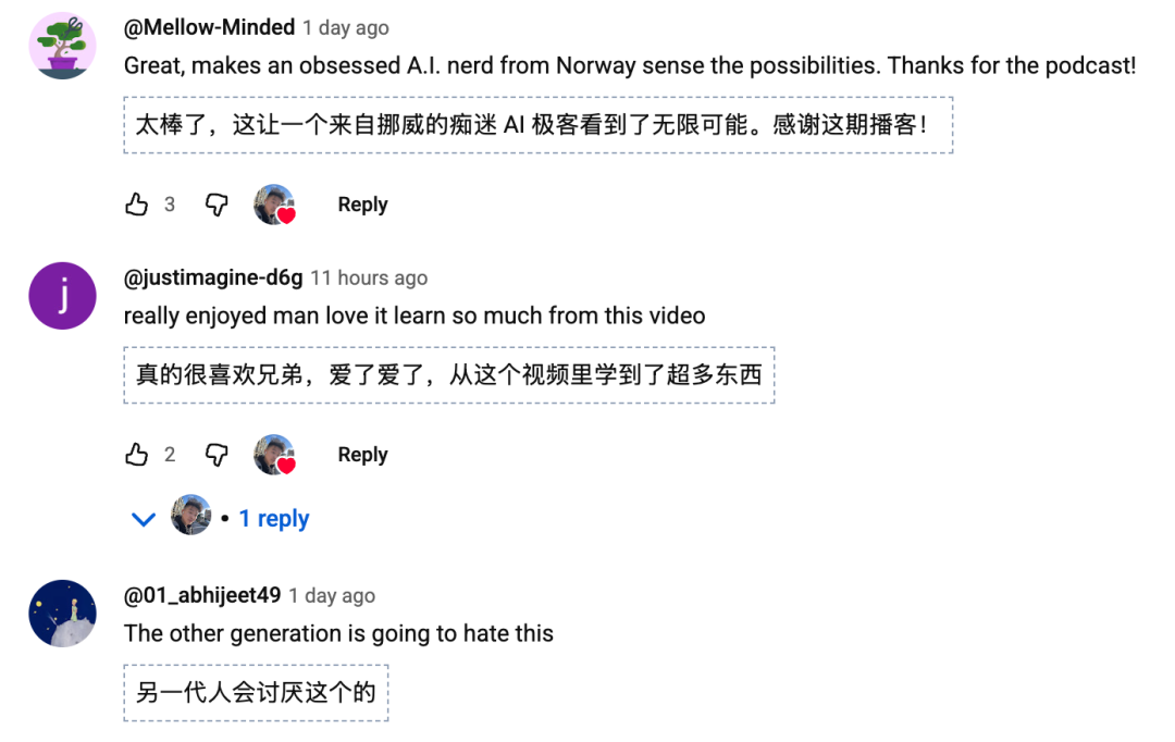 在他的采访视频下,人们声称从他的经历中学到了太多东西,以及AI加成下的无限可能
