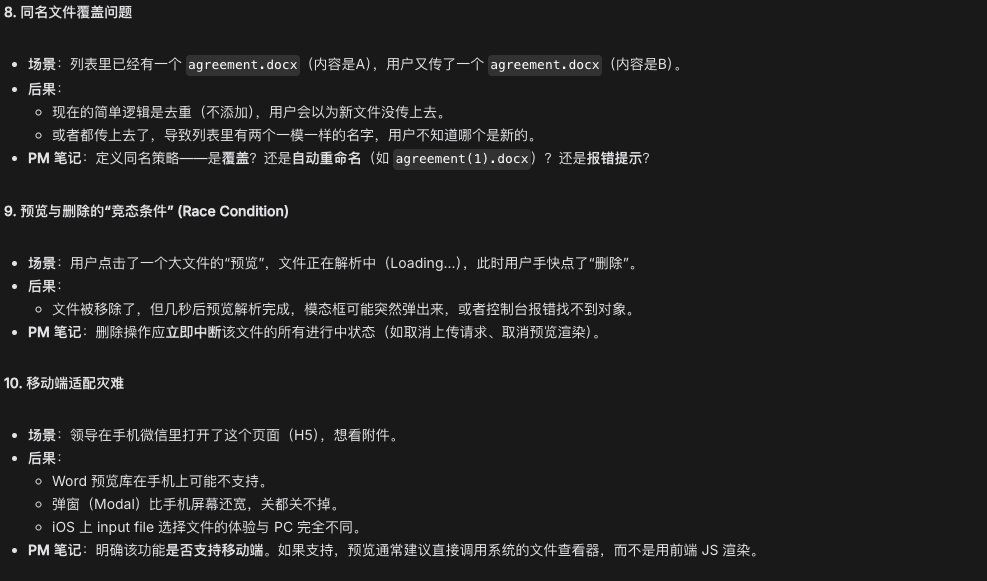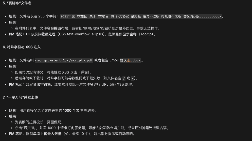 当然,这个回答的内容不能全部采纳,产品经理需要用自己的判断力去决策最终用什么,但确实能让引发更多思考和反省,也给后面测试人员提供了case。