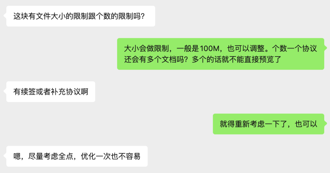 在设计这个功能时,我的脑回路是这样的:用户创建一个协议→上传一份 PDF或Word→ 点击保存 → 完事。因为只有一个文件,所以我设计了点击按钮直接预览,交互顺滑,逻辑闭环。