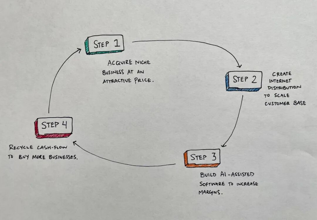 你一开始就通过解决公司的痛点来构建定制解决方案。在这个过程中,你了解他们的行业。一旦你构建了几个东西,并确定了你向客户提供的高投资回报率的自动化方案,你就可以尝试将同样的解决方案转售给同一细分市场的其他企业,这样你就能获得更多数据来构建和改进你的解决方案。