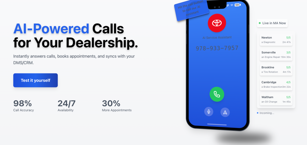 对于很多本地服务企业来说,销售用例能够为这些企业提供非常快的投资回报率。比如语音和聊天机器人用例,自动预订和接待应用,快速响应潜在客户的自动化,都可以很快增加这些企业的收入,因为他们在这些流程中通常会损失很多收入。AutoAce 就是帮助汽车经销商用语音 agent 预约和回答问题的。