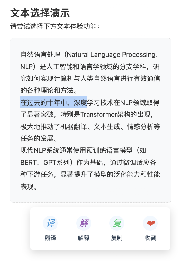 漂浮字幕:通过 opacity 和 transform 实现透明度和垂直移动的动画,过渡时间为 0.4s。