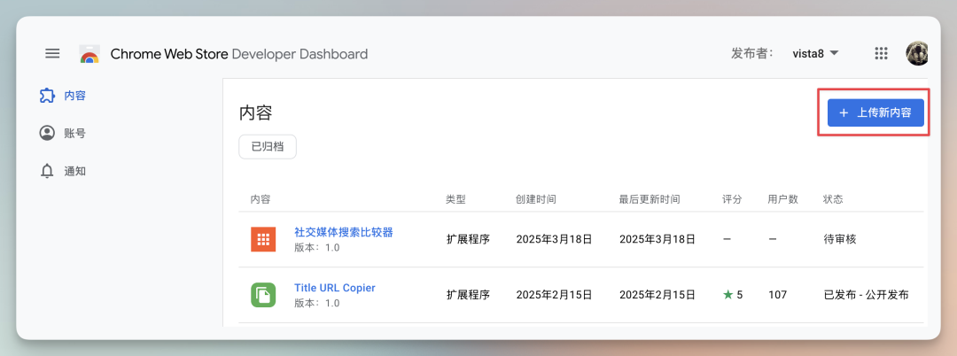 2、注册好以后,在后台选择“上传新内容”。