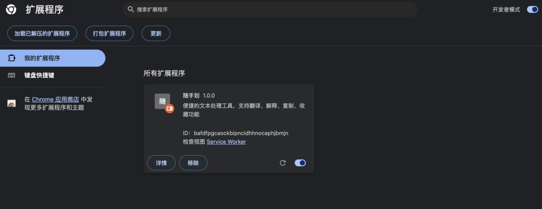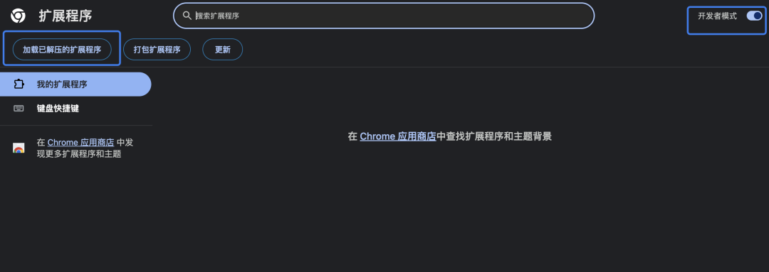 2、点击”加载已解压的扩展程序”,浏览选择你的Chrome开发文件夹