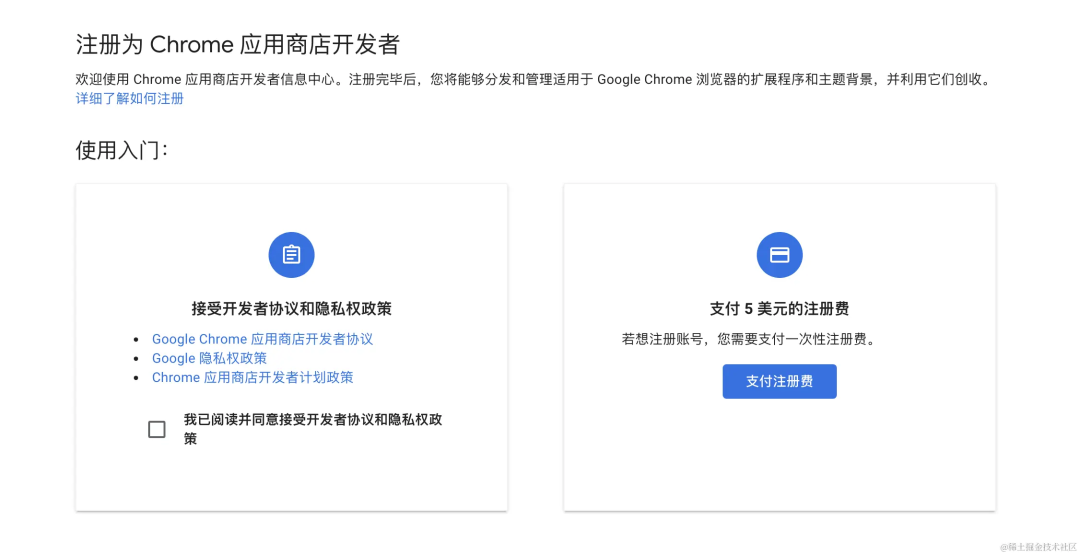 1、打开Chrome应用商店开发中心,注册为开发者,然后交5美元,一次性收费,以后上架多少个应用都不用再花钱。