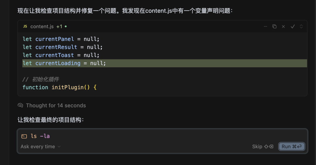 因此,为了减少这种情况,我们可以在需求描述中明确范围,指明哪些代码可以修改,哪些不能动,以降低 AI 误改的概率。
