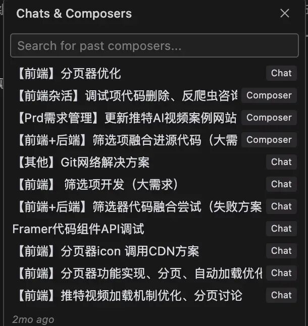 使用AI Coding工具时,建议把大模块需求拆分成小问题,并为每个新问题单独开启一个 Chat 对话。过长的对话可能导致 AI 记忆混乱、响应时间变长,同时也不利于回顾和管理。