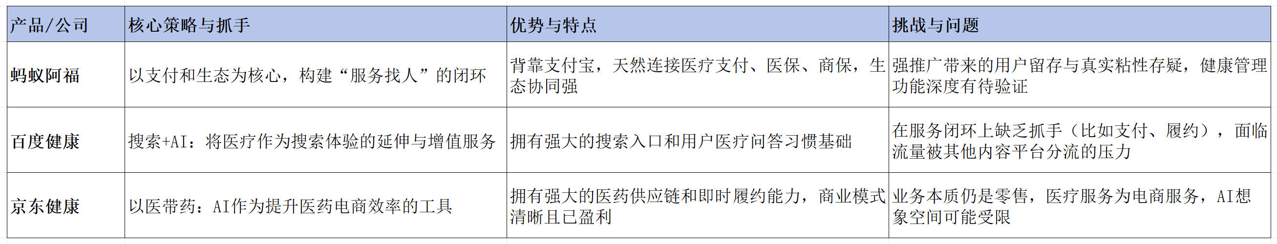 这场竞争不仅仅是产品功能的比拼,更是集团核心能力与战略路径的较量。蚂蚁选择了支付生态,京东强化供应链,字节依赖流量转化,而百度则在努力守住搜索入口。不同路径背后,是对互联网医疗最终形态的不同理解。