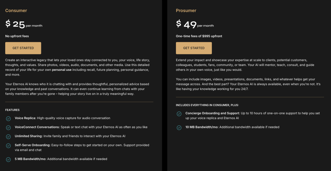 但有意思的是,这家公司的转型路径完全出乎意料。最初它叫 Eternos,定位是一个遗产服务平台,帮助人们在去世后为亲人留下自己的声音和故事。他们的第一个客户 Michael Bommer 是一位身患绝症的老人,他花了 25 个小时和 Eternos 交流自己的人生、兴趣和世界观,最终创造出了一个数字版的自己,让家人可以在他去世后继续与他”对话”。这个故事感人至深,也让 Eternos 获得了大量媒体关注。