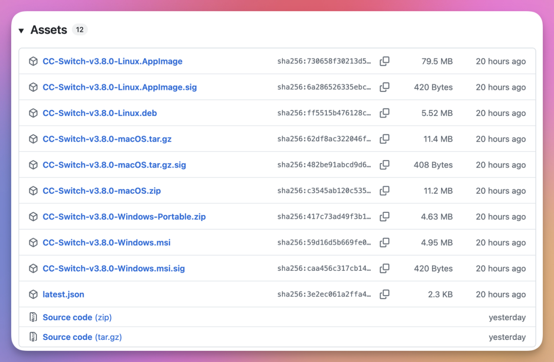 在下载链接下滑到底部,找到Assets区域,根据你的电脑型号下载对应版本。