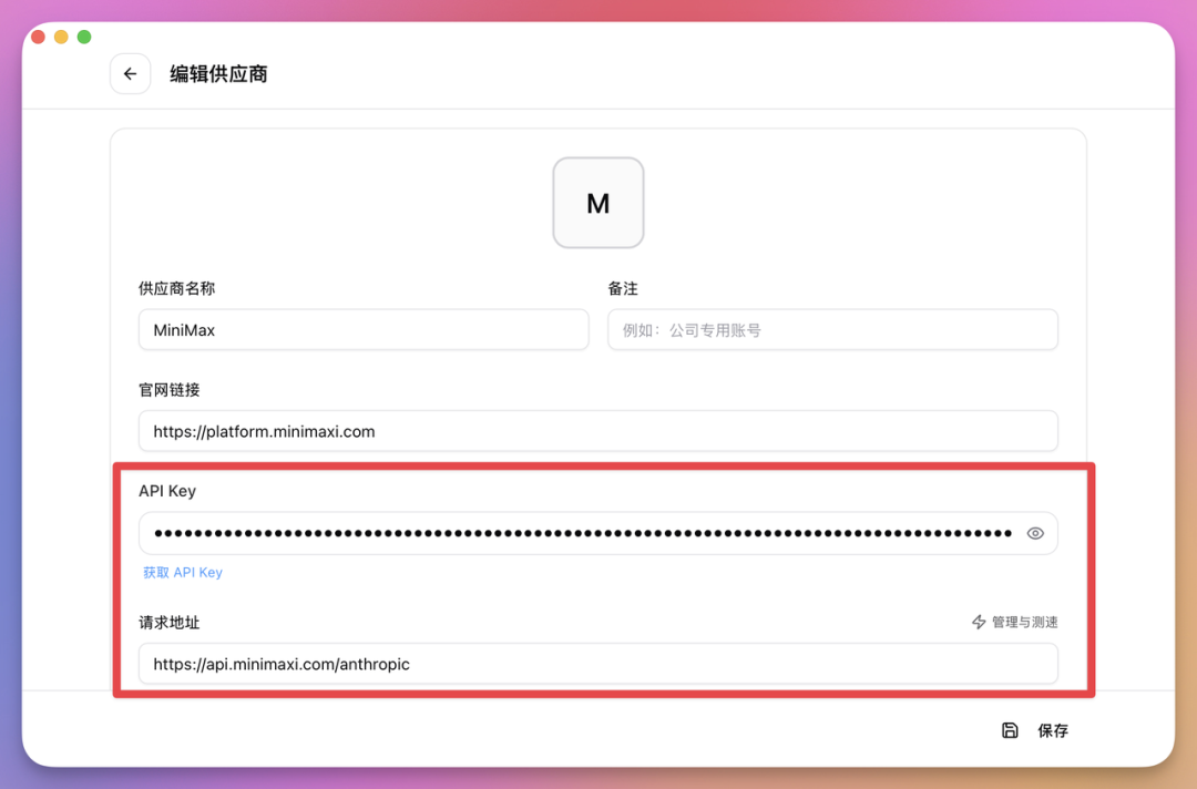 • 填写API Key和主模型的Model ID(在对应模型后台查看)