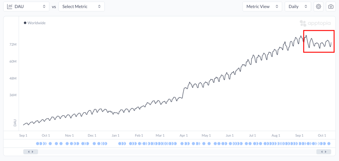 第三方数据公司 Apptopia 统计称,ChatGPT 的移动端日活跃用户增长自 4 月以来明显放缓,9 月至今已陷入停滞。同时,ChatGPT 在美国的每日活跃用户平均使用时长自 7 月以来下降了 22.5%,平均对话次数也减少了 20.7%。