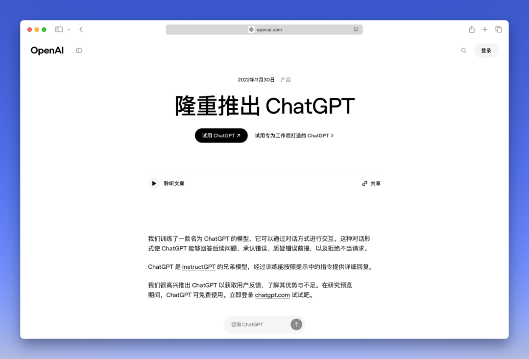 2022 年 11 月 30 日,ChatGPT 发布