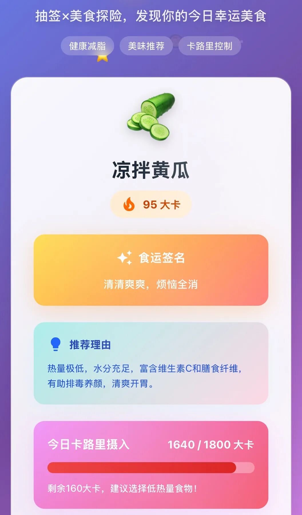 神奇的是,我发现上述需求,都可以通过灵光“闪应用”,至少部分解决。比方说,目前最流行的闪应用之一,就是“抽签看看明天吃什么”——只需要在此基础之上,加入个人信息以及减脂诉求,就能生成一个“定制减肥指导应用”了。说实话,我确实正在鼓捣这个应用,如果真的做出什么成果,一定要拿出来给其他人分享。