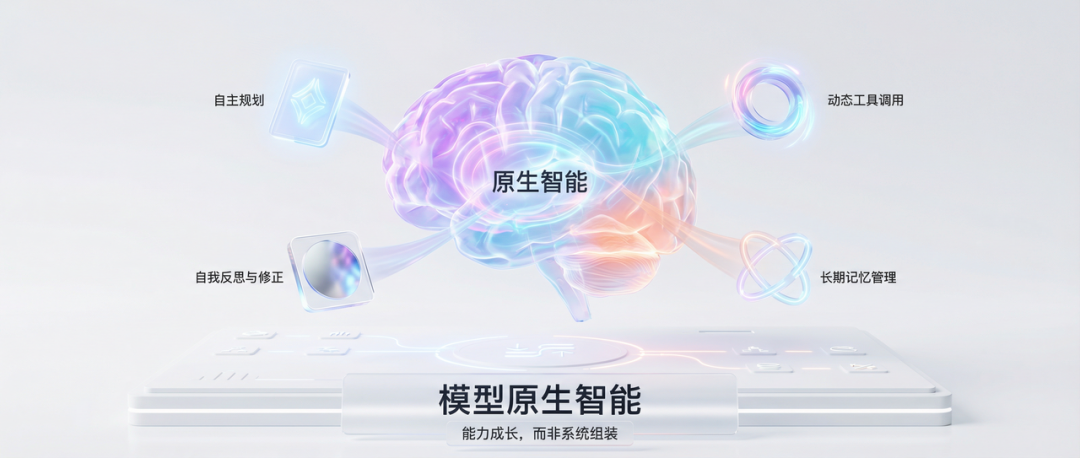 而现在,事情正在进入一个完全不同的阶段。我们已经不太满足于靠外部角色编排、流程控制、规则补丁来硬怼能力了,而是开始希望,把规划、记忆、反思和工具使用这些认知能力,直接内化到模型本身——像肌肉记忆一样刻进去。不是告诉它“一步步怎么做”,而是让它自己学会怎么干活。