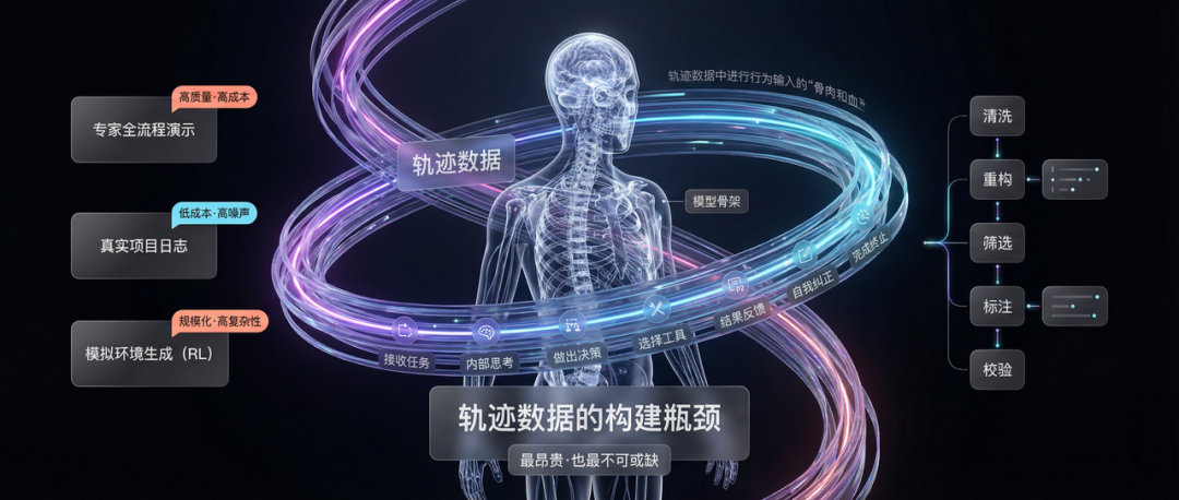 尤其是那种记录了“从接任务 → 思考 → 调工具 → 试错 → 反思 → 完成任务”全流程的轨迹数据——这个东西贵得离谱,而且还没法量产。