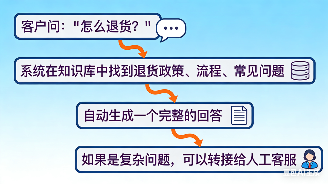 - 有RAG的AI → 先在你的知识库里找资料 → 再基于资料回答 → 准确得多