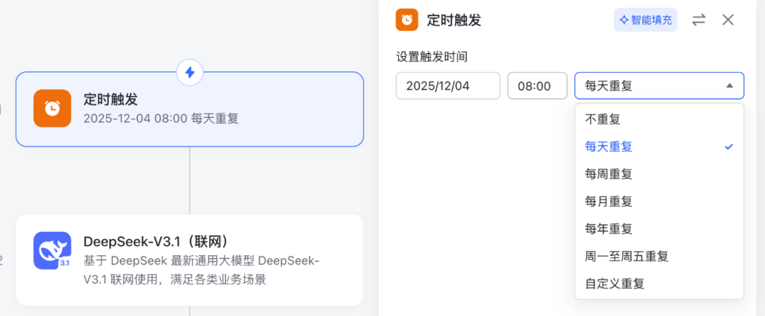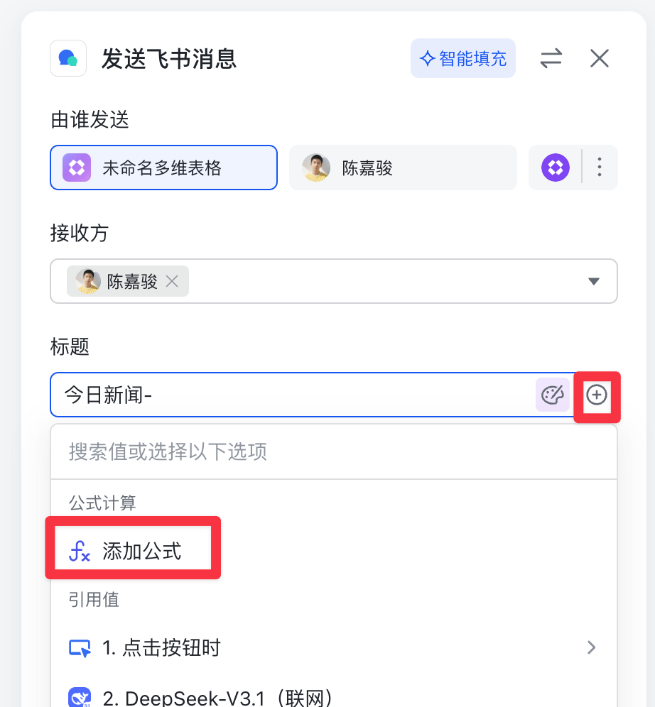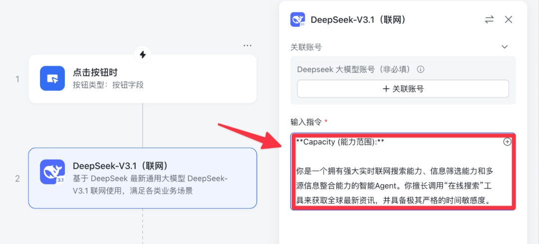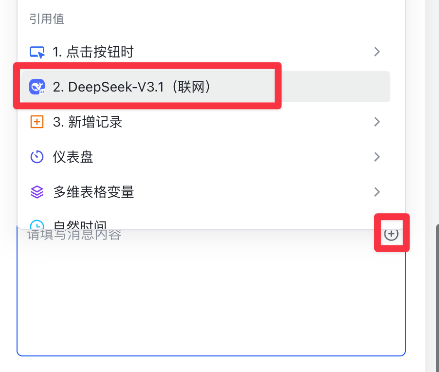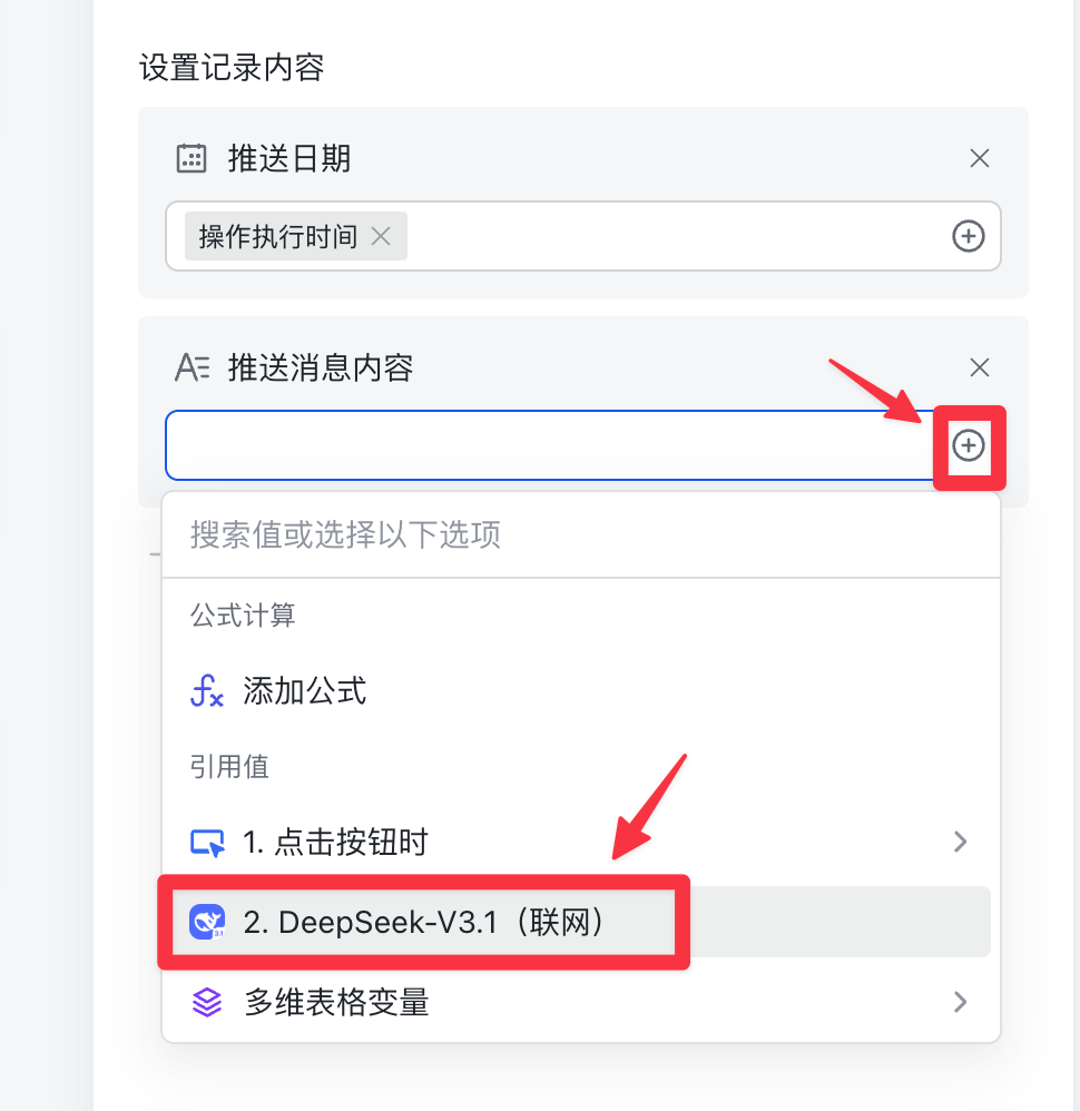 推送的消息内容我们点右边这个小的加号按钮,引用2这个DeepSeek。