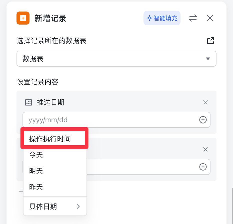 点一下推送日期的输入区域,就会弹出一个列表,选里面的操作执行时间。