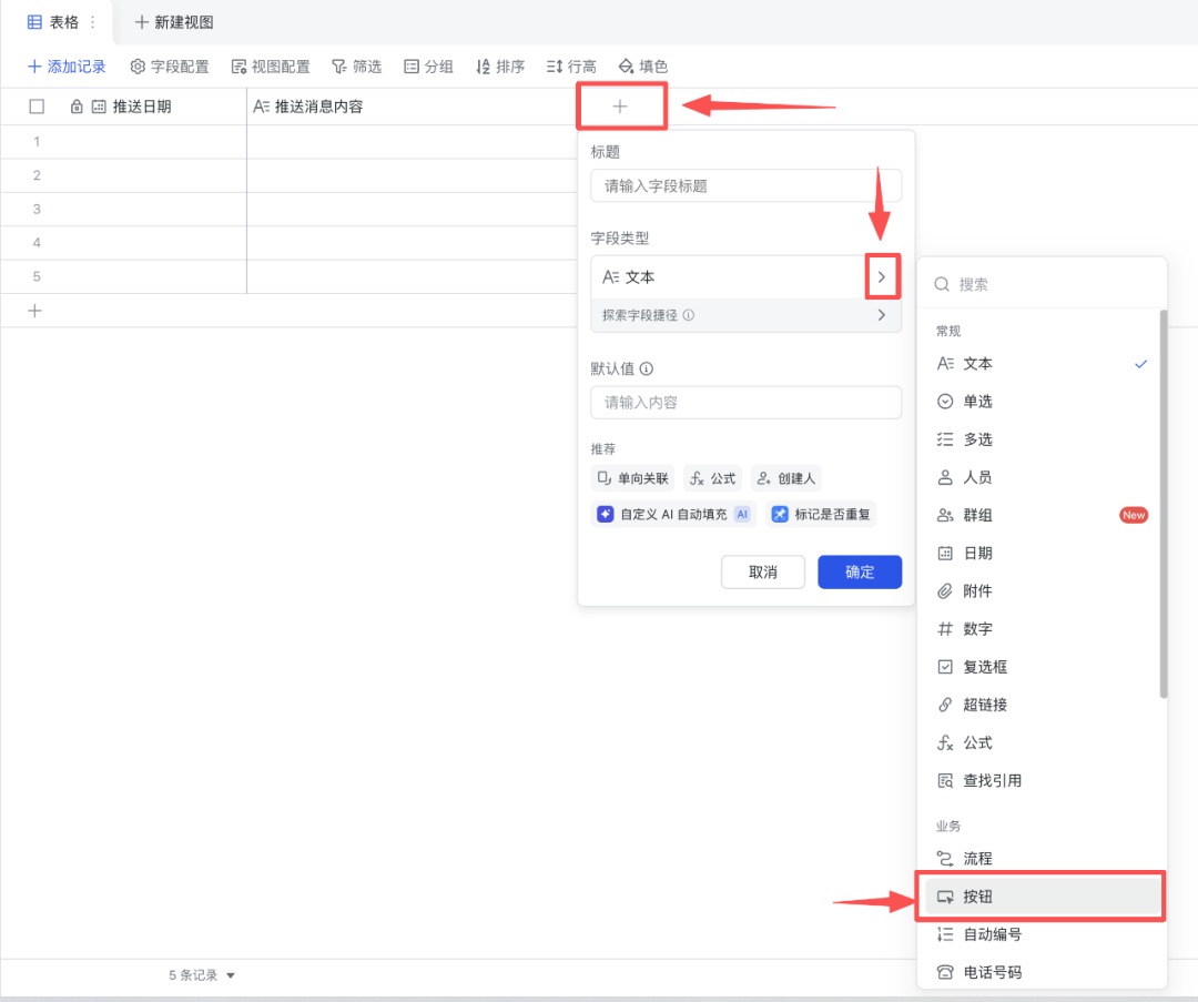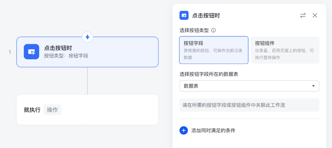 到此,一个简单的日报工作流就搭建好啦,我们回到数据表,添加一个按钮。