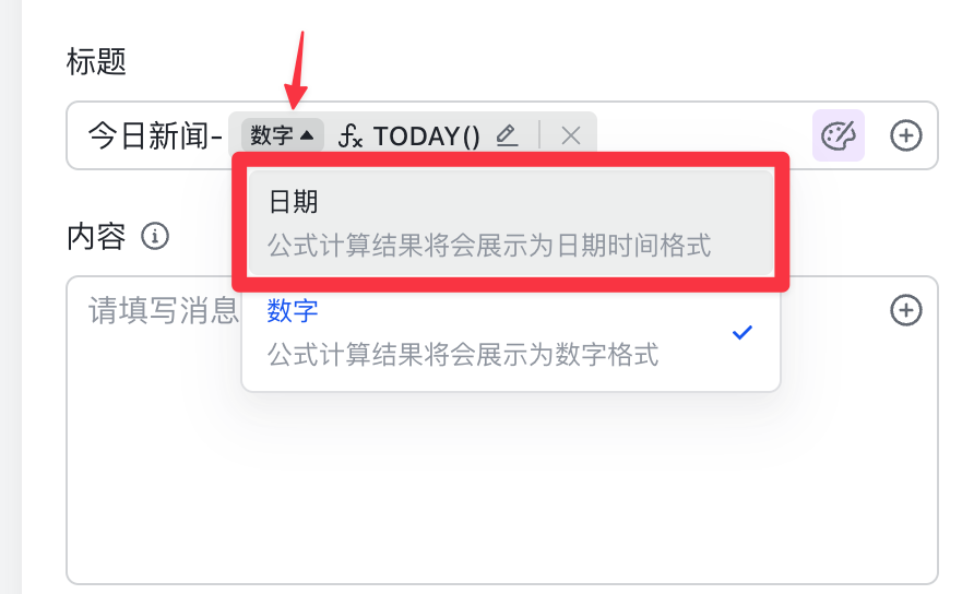 标题写“今日新闻-”,然后如果想让它显示操作当天的时间,就要添加公式